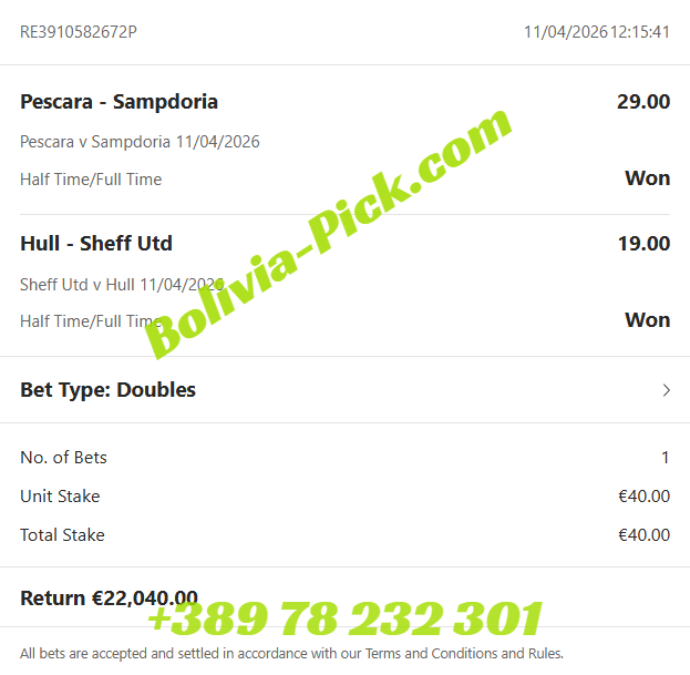 We have just one mind about this one. To make our costumers powerfull about daily matches today. They just need to follow our instruction about betting, stake and plan. We create best option for sure profit!