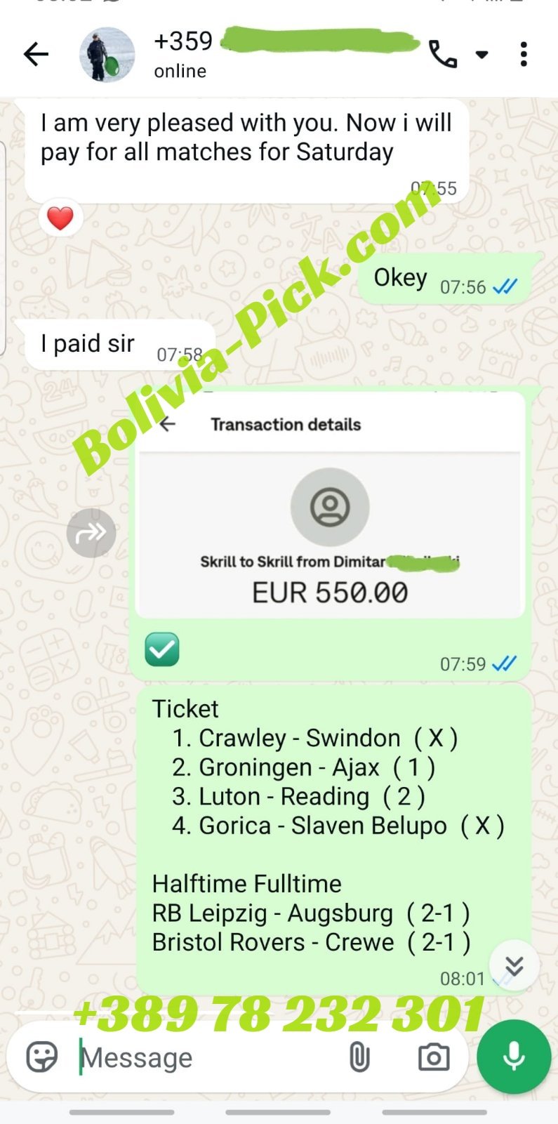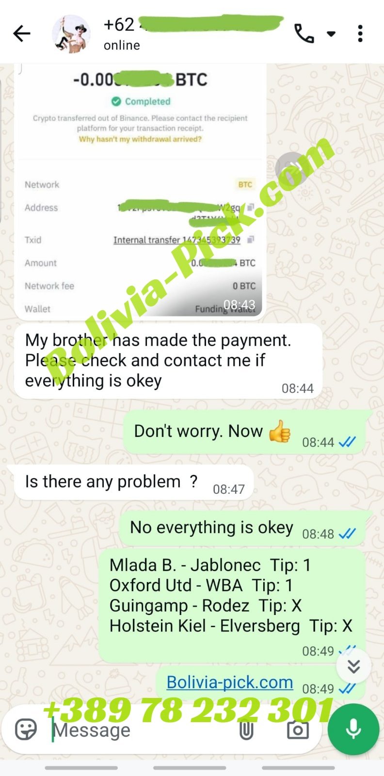 Full contact just on our official whatsapp and e-mail. We reply on messages very fast and you can make a deal with 100% sure profit.