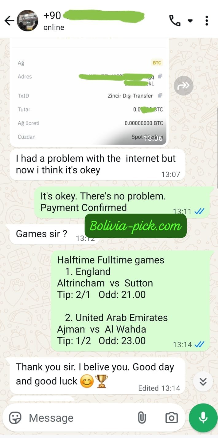 We know what you need! That you want to earn with fixed matches. We are here to provide the best service for everyone. We work with the most reliable sources available in clubs, so we have no chance of making a mistake. The right link and the right information make the right betting profitable, not lucky. Here the payment for the fixed matches is before. If you want to make a profit with our fixed HT / FT matches you will have to pay first to get them. They are available anytime.