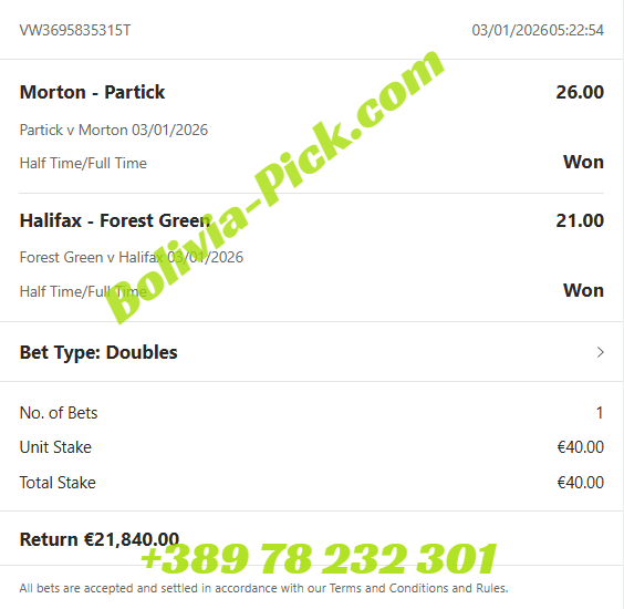 | 03.01.2026 | Forest Green vs FC Halifax | 2/1 | 21.00 | 0 – 1 | 2 – 1 |